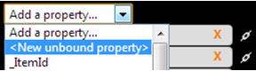 To create a new property, select <New unbound property>. Give the new property a unique name and then click . |
