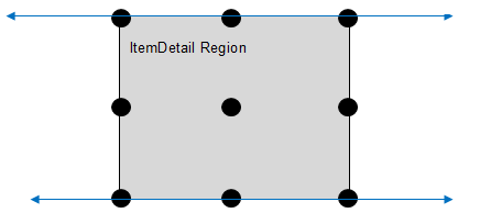 - The reference region is Main or an embedded Header (such as, LeftHeader, RightHeader, TopHeader, BottomHeader), and the reference point is not along the top and bottom blue lines in this diagram: