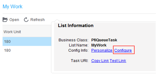Each list in the Inbasket can be modified to display information that is most important for the users to see when viewing work items.