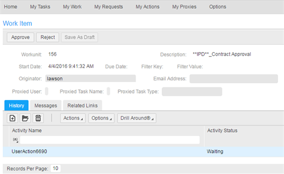 In the example that follows, buttons for Approve and Reject are available.