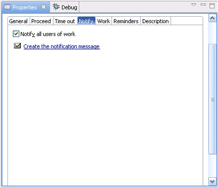 The Notify tab is used for sending a message to a user to tell them that a work action has been sent to their Inbasket.
