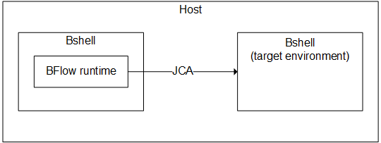 The BFlow runtime and target environment typically run on the same host, in different bshells. This diagram shows this scenario: