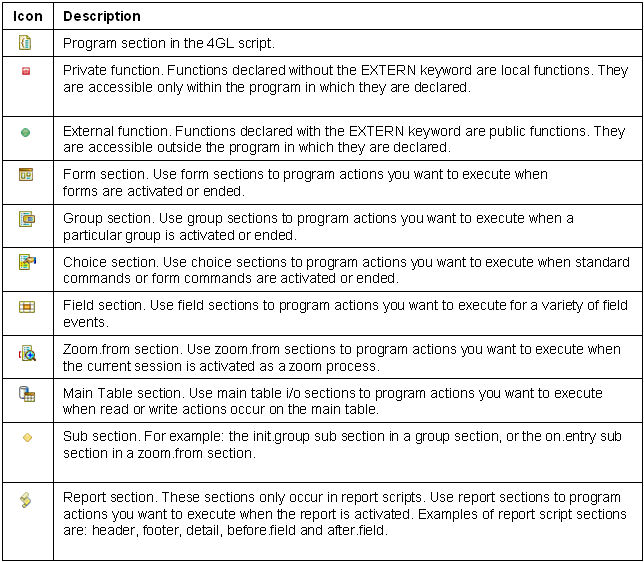 For details on the 4GL components mentioned in the previous table, see the Infor ES Programmers Guide (Infor Customer Portal KB2924522).