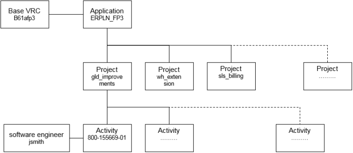 For each high level software requirement (business requirement), a software project is created on the Project Server. Multiple projects can be defined per application. A software project is split up into activities. Project managers can create software projects and activities. They can also view the modified LN software components per activity, through the Software Project Explorer. A separate activity is created for each individual software requirement, such as a bug fix or a new feature within the project. Each activity is assigned to a software engineer. See "Defining a software project" in the Project Server documentation.