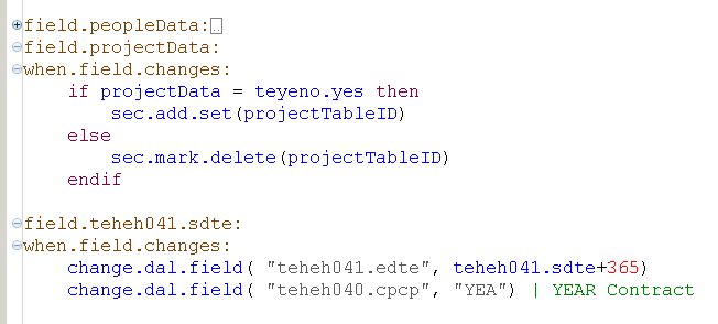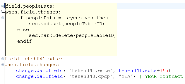When you hover over a folded 4GL element, the hidden code is displayed.