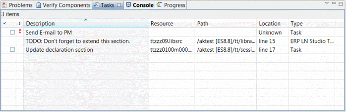 - If a task is associated to (a line in) a script or library, double-click the task to edit the script or library. The editor opens the script or library at the involved line.