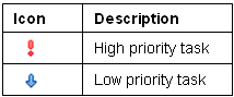 | The second column | Indicates whether the task is high, normal, or low priority. |