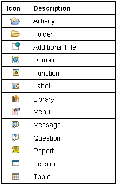 | 3 | Main Component Type, displayed in ascending order. For example: domain, report, session, or table. |