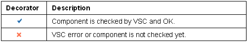 The following decorators are used to indicate the VSC status of a software component. The decorators are displayed in the upper right corner of the software component image.