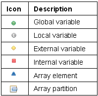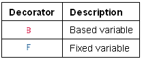The following decorators are used to indicate whether a variable is fixed and / or based. The decorators are displayed in the upper right corner of the variable icon.
