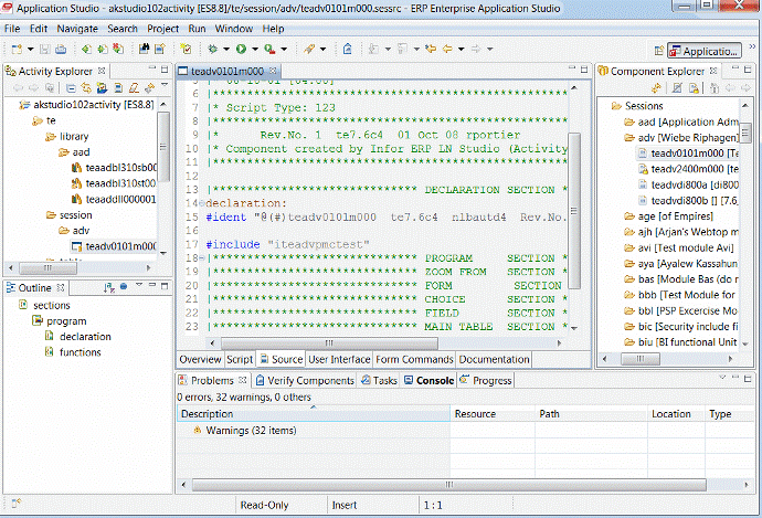 This topic focuses primarily on the LN Studio specific features. It does not describe the standard Eclipse editor functionality, such as the , , , , and commands.