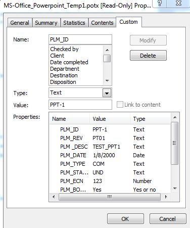 Document is created in the PLM and the information that is mapped from PLM is updated in Powerpoint.