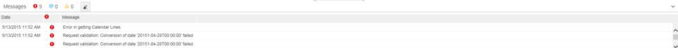 - El panel de mensajes se muestra en la consola en forma de vista contraíble que se amplía automáticamente cuando se debe mostrar un mensaje. El panel de mensajes también muestra los recuentos de mensajes y la opción Borrar para borrar los mensajes.