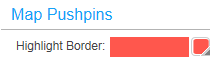La opción Resaltar el borde permite seleccionar el color del borde para las chinchetas del mapa seleccionadas. |