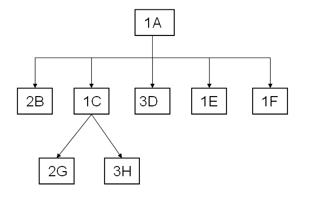 Au lieu de copier la nomenclature dans la ligne de commande, il est possible de créer une ligne de commande unique pour l'article A principal, associé à une quantité 4. En cas de sortie du stock, les composants (B, C, D, E et F) sont réservés et sortis. L’un des inconvénients de cette méthode est qu’il est impossible de dévier des données de nomenclature.