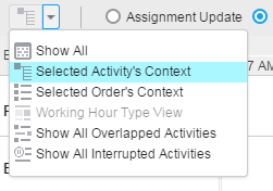 Alles weergeven: Dit is de default weergave. Alle medewerkers worden weergegeven. Wanneer u de gegevens bijwerkt (vernieuwt) of een niet-toegewezen activiteit in het raster selecteert, wordt de default weergave weer getoond.