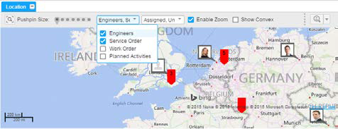 Activiteitpunaise: Representeert toegewezen en niet-toegewezen serviceactiviteiten. De gebruiker kan de punaise aanwijzen om de knopinfo te bekijken. |