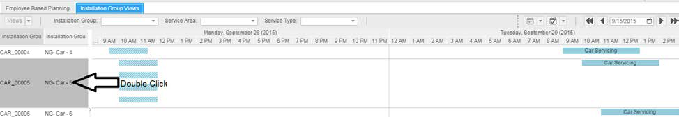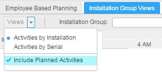 Wanneer u de activiteiten bekijkt op basis van de installatiegroep, worden de serviceorderactiviteiten en de geplande activiteiten weergegeven voor de desbetreffende installatiegroepen. U kunt de activiteiten opnieuw plannen en de wijzigingen opslaan in de applicatie.