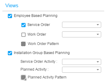 In de sectie Op medewerker gebaseerde planning kunt u de ordersoorten selecteren die moeten worden weergegeven en ook het patroon voor werkorders in de workbench. Met de twee lijsten kunt u de status voor de serviceorder en de werkorder selecteren zoals die in de workbench worden weergegeven.