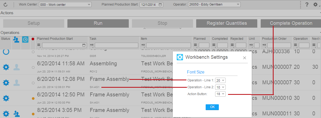 Desde Ajustes de consola, el usuario puede cambiar el tamaño de los tipos de letra de las operaciones o los botones de acción. Ayuda a ajustar el número de operaciones que se muestran. El usuario puede guardar estas configuraciones seleccionando la opción Guardar valores predeterminados en el menú Configuración.