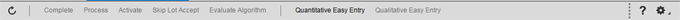 - Entrada rápida qualitativa: Abre a tela Entrada rápida qualitativa para as linhas de dados de teste da ordem de inspeção. Essa opção é ativada somente se a linha da ordem de inspeção tiver o campo Tipo de resultado definido como Qualitativo.