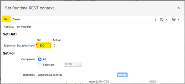 The Set Runtime REST context (ttadv2270m700) session is started.