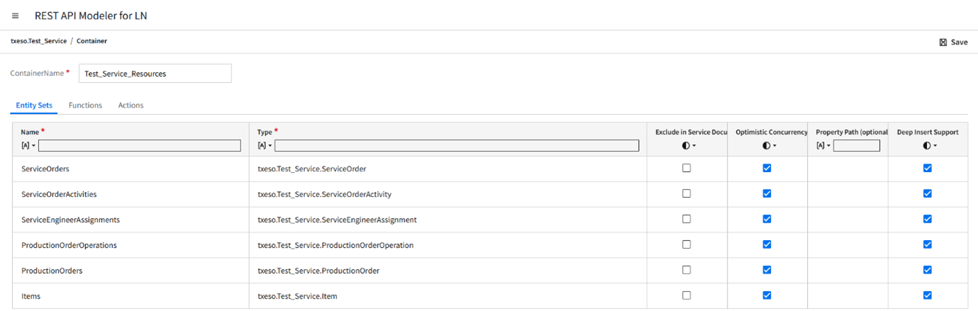 - Exclude in Service Document: If this check box is selected, the entity set is designed for indirect access through navigation (referencing) rather than direct access via the REST API. If this check box is cleared, the entity set is intended for direct access via the REST API.