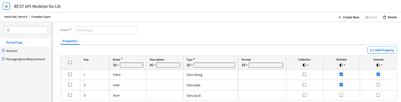 You can create a new property in the complex type by clicking the button. Consequently, a new empty row is created in the properties grid table.