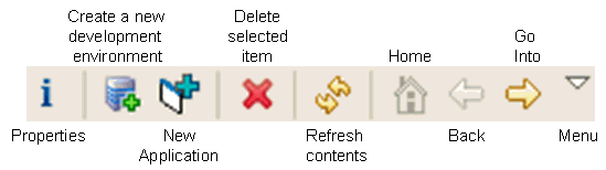 | Create a new development environment | Starts the New Development Environment dialog box. Here, you must enter the properties for a new development environment. |