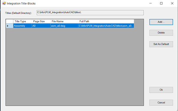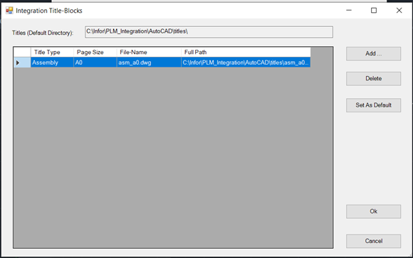 Click on integration menu "Insert Title-Block", The Insert Title Block dialog box opens. If you are using the integration for the first time, the Title Type and Page Size will have no values (as shown below).