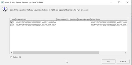 To terminate the check-In process click and then click on the PLM - Select Properties to Save To PLM dialog box.