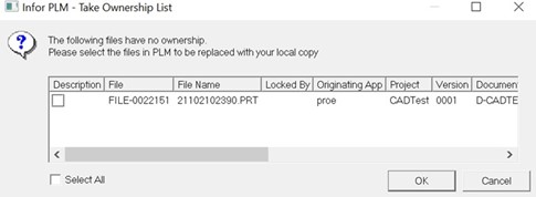 - Select from the menu. As a result, the file is saved in PLM with no owner.