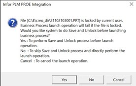 - Ensure that the model files and the drawing files are open in Creo, before you dispatch the model file to business process.