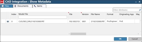 - Click the Items tab to display the PLM Item data related to your Creo files.