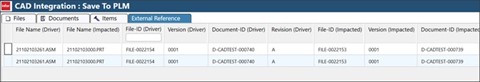 When you perform the SavetoPLM operation, the references are displayed on the tab of the CAD Integration: Save to PLM dialog box.