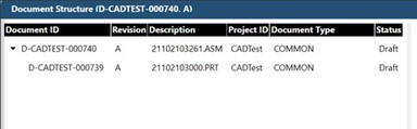 The document structure view displays the document and child documents that was created in PLM. The item structure displays the items and BOM that were created for that document with the child items (BOM).