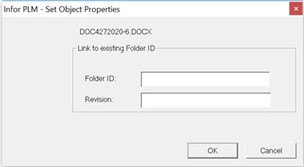 - If required, in the Revision field, a revision number for the item to which you want to link your Microsoft Office document or work sheet.