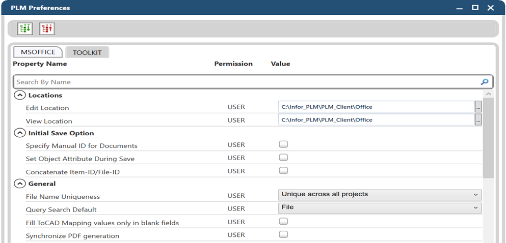 When you log in to PLM for the first time, you need to change the Edit and View Location to where your Office files would be transferred to.