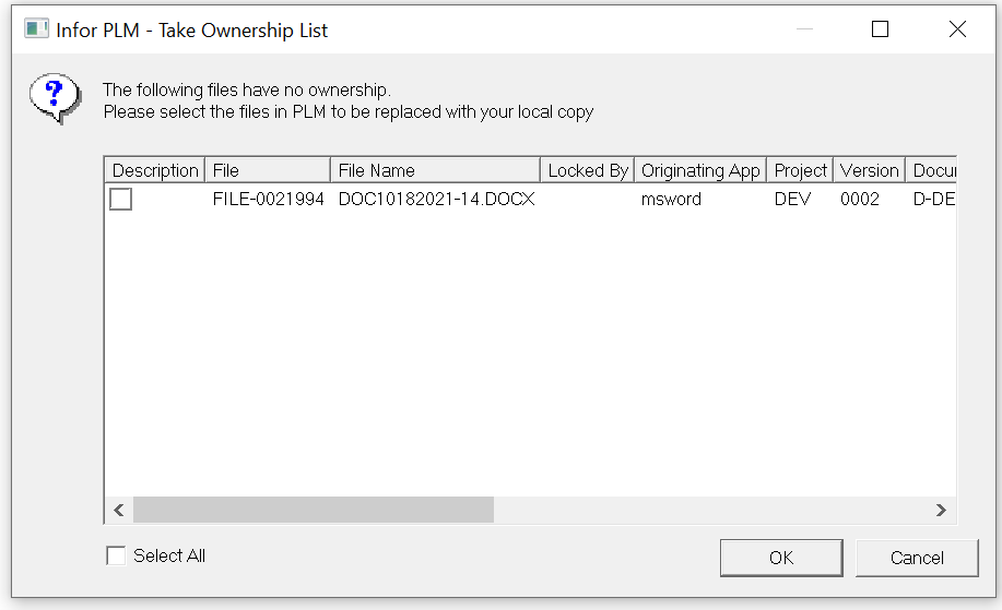 - the appropriate ID(s), if prompted. This depends on the preference settings. See PLM Options.