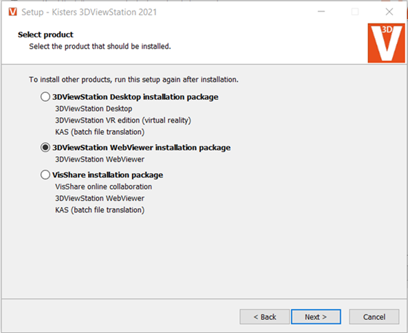 - Select the 3DViewStation WebViewer Installation Package option.