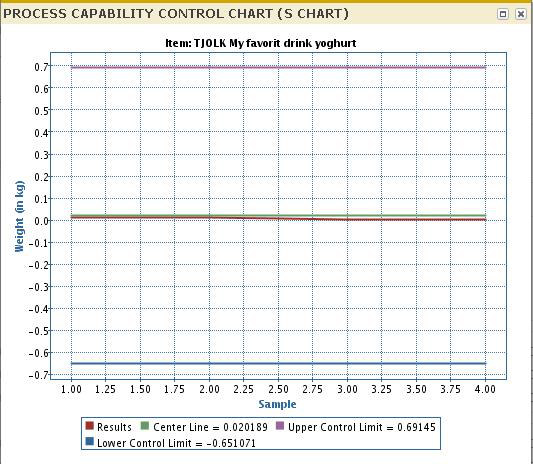 L'area del tracciato inferiore del diagramma visualizza lo scostamento standard (S) dei valori misurati per ogni campione. Il diagramma S viene creato per primo per garantire il controllo statistico della variabilità del campione.