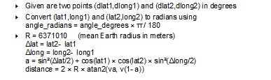- È possibile calcolare la distanza in linea d'aria oppure calcolare la distanza effettiva utilizzando un servizio Web dedicato. Se la distanza tra due ubicazioni non viene individuata, il calcolo di tale distanza viene effettuato con una semplice formula. Ad esempio, il calcolo secondo il metodo 'in linea d'aria' è il seguente: