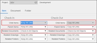 | Related Documents | Check in all objects | Check out all objects |