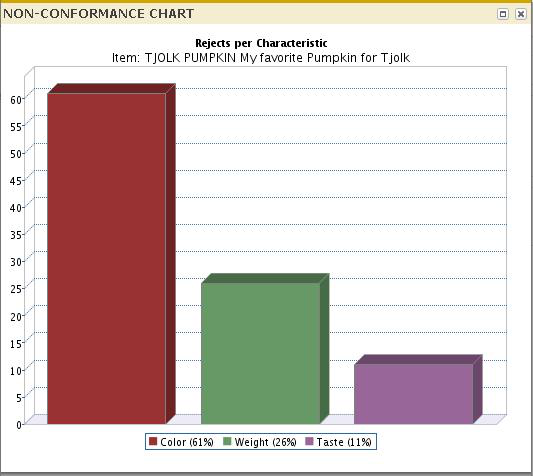 To plot this chart you must select the combination of item or item/supplier, inspection source, aspect/characteristic and the relevant time period. This chart is based only on actual inspection results.
