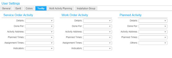 The Tooltip option is configurable. You can use this option to choose the fields that must be displayed with in the tooltips that are displayed on Map and Gantt.