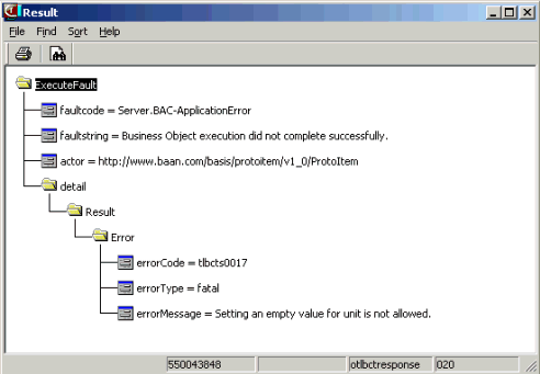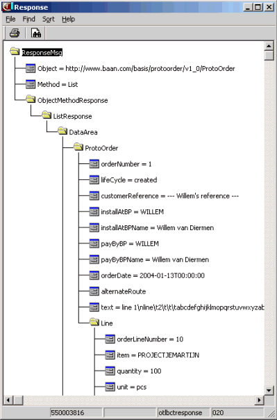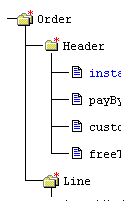 Folders (Business Object components) that repeat are identified with a special icon (Order and Line are repeating):
