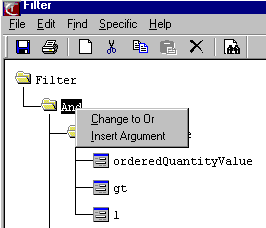 You can use the shortcut menu to change an And to an Or, and vice versa. In addition, you can also add an <Argument> folder.
