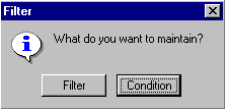 - Click if you want to specify a single condition: one condition on one attribute. The session starts, in which you must specify the attribute, operator, and value for the condition. The following figure shows an example of a filter created in this session: