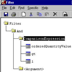 The filter is part of the XML Request argument. To create a filter, click . The graphical browser for filtering starts. The graphical browser checks whether a filter is already defined for the current test case.