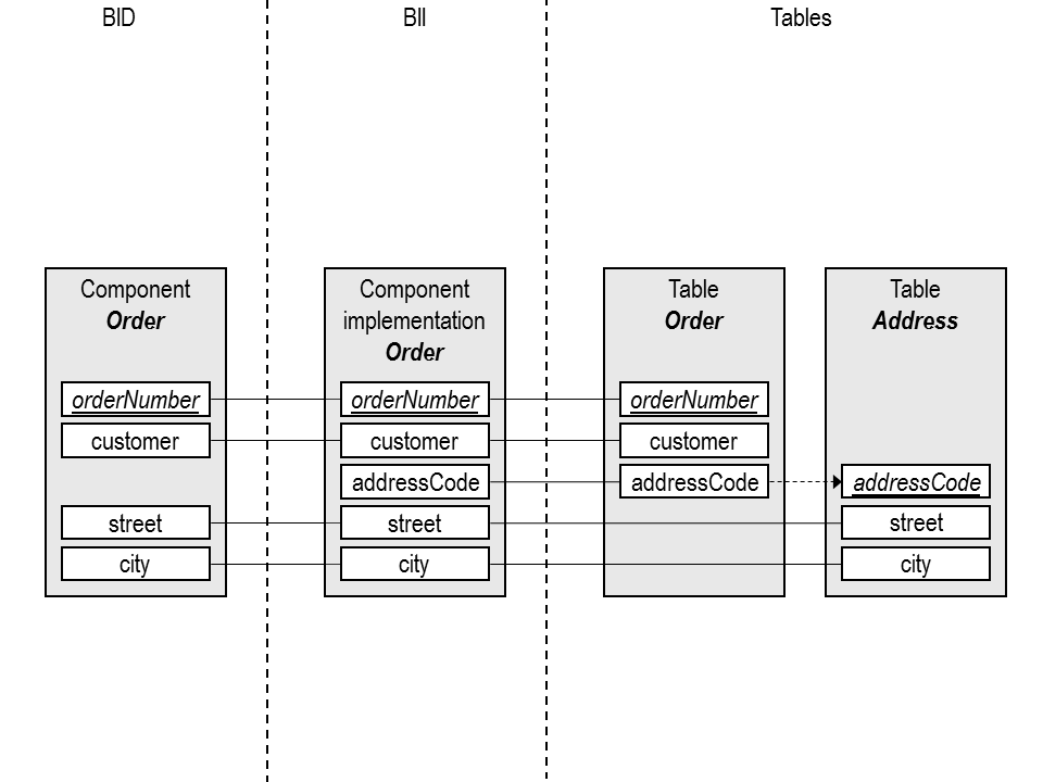 The address is a typical ‘associated non-root table’ case. Compared to the previous situation, the relationship direction has changed: the root table refers to the non-root table.
